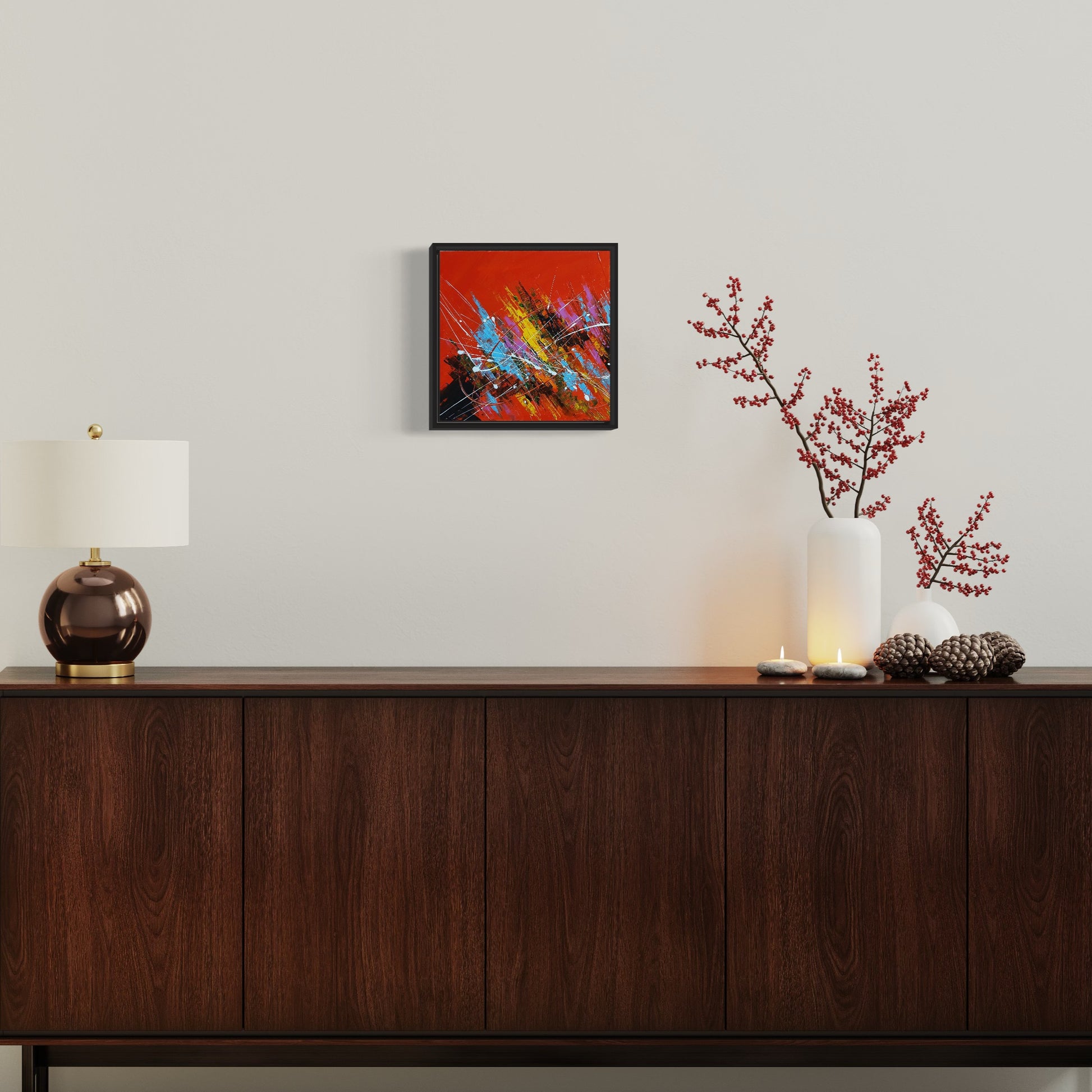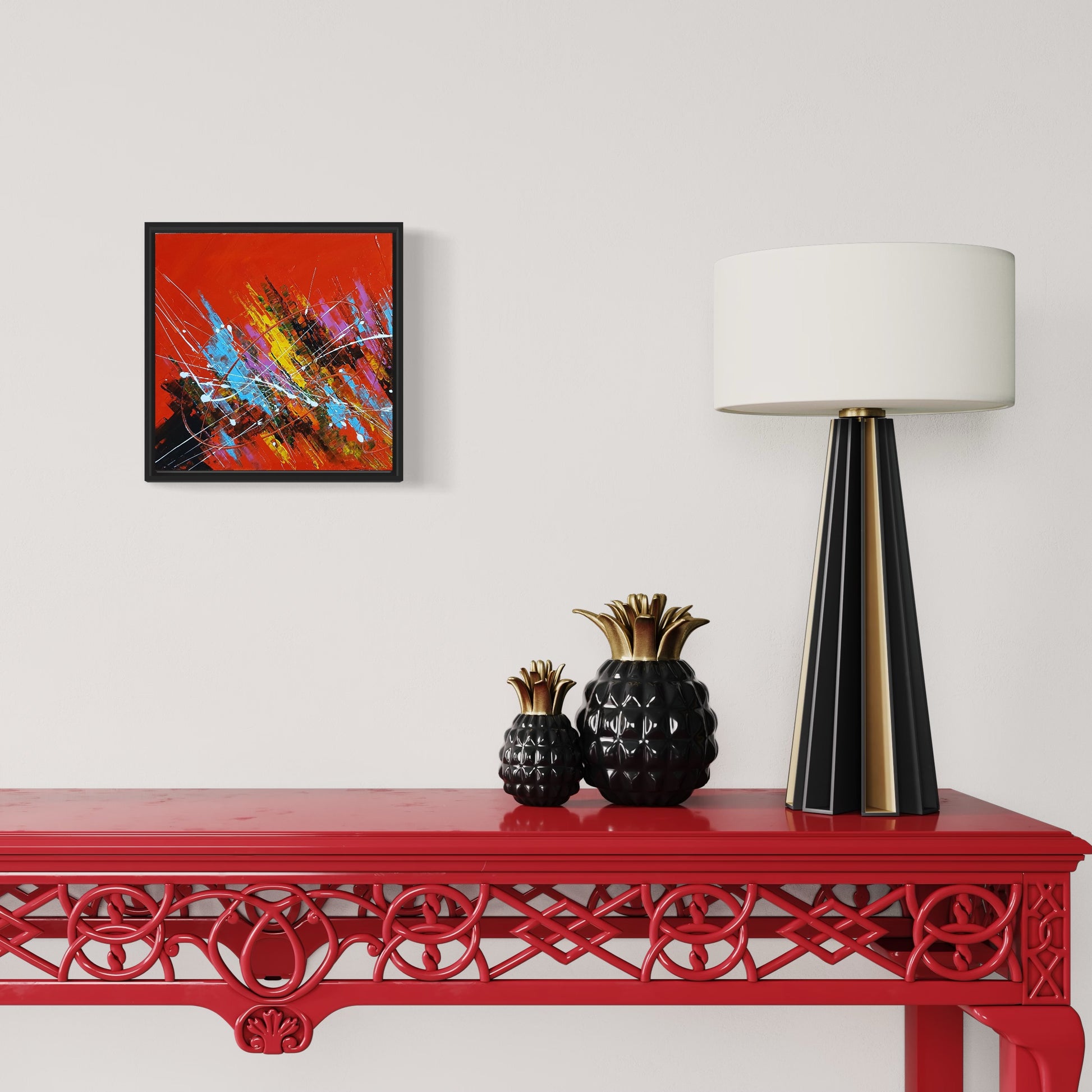 "Bring color to your boring walls with this very colorful piece of wall art. Painted with artist-grade paints and brushes, a Positive Presentation is sure to captivate eyes with its wide range of vivid colors".