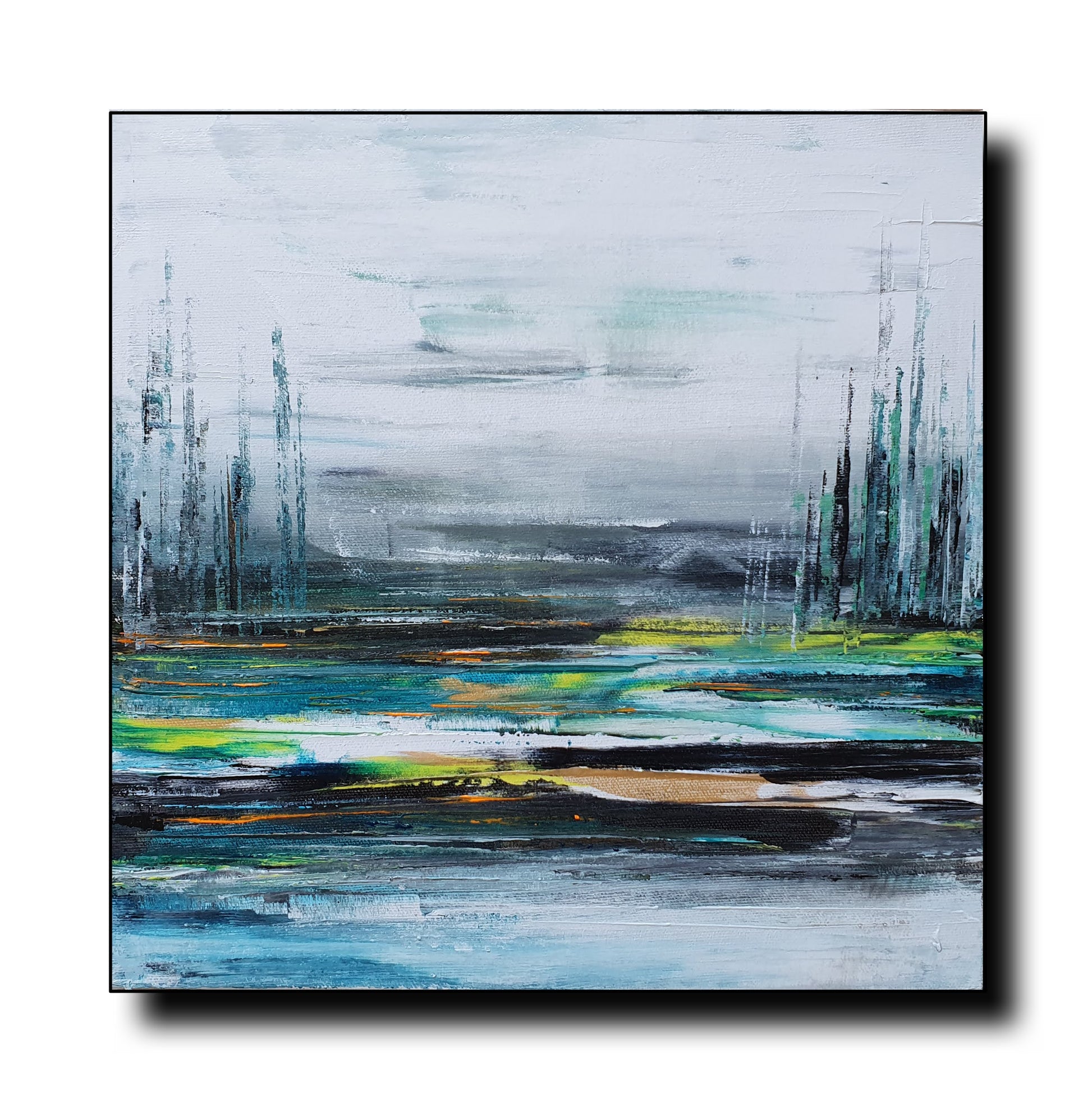 This abstract landscape painting portrays an otherworldly vista, where the boundaries between earth and sky blur into a dreamscape of soft hues and fluid forms. Inspired by the beauty of nature, it invites viewers to immerse themselves in the serene mystery of distant horizons.
