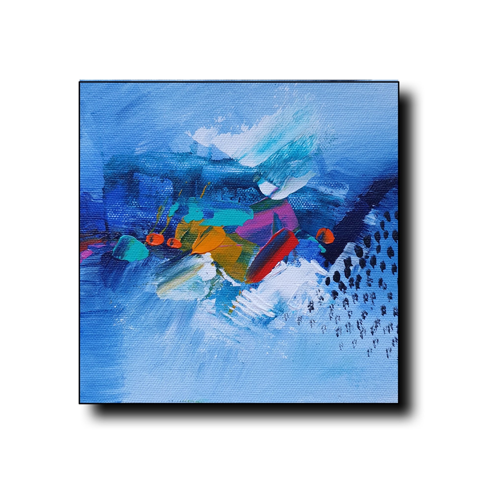 A vibrant trio of abstract art that flows in harmony. Each painting is 6x6 inches, framed at 10x10 inches(White Feame), perfect for adding a pop of color and movement to any space.