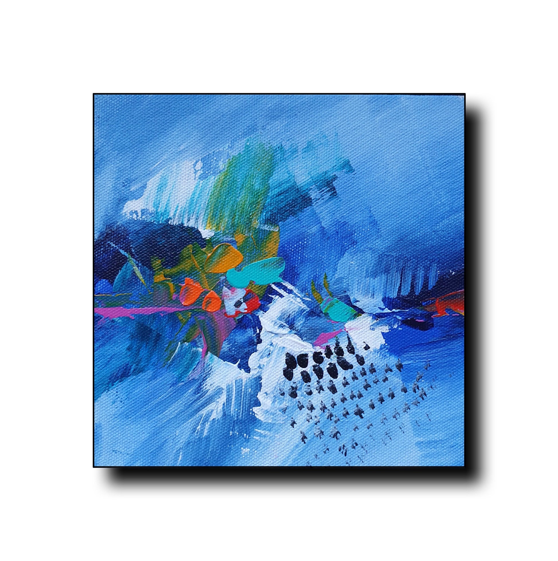 A vibrant trio of abstract art that flows in harmony. Each painting is 6x6 inches, framed at 10x10 inches(White Frame), perfect for adding a pop of color and movement to any space.