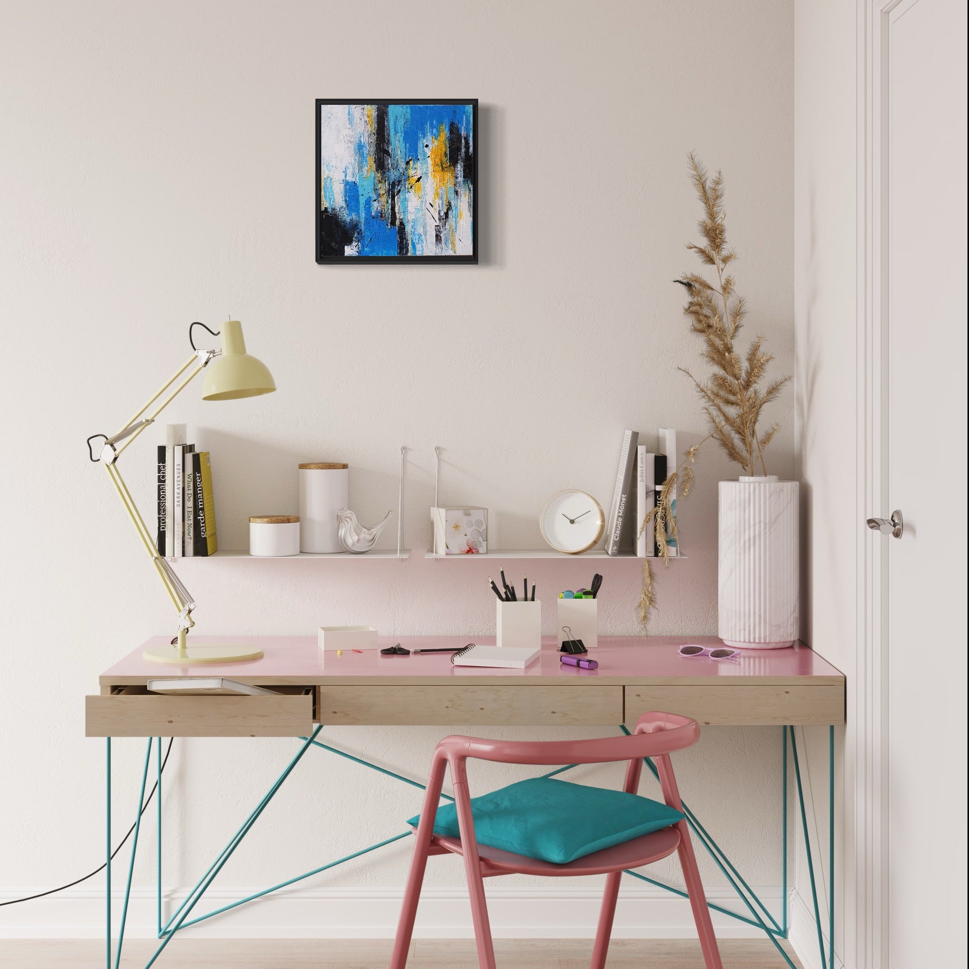 "Bring color to your boring walls with this very colorful piece of wall art. Painted with artist-grade paints and brushes, a Positive Presentation is sure to captivate eyes with its wide range of vivid colors".