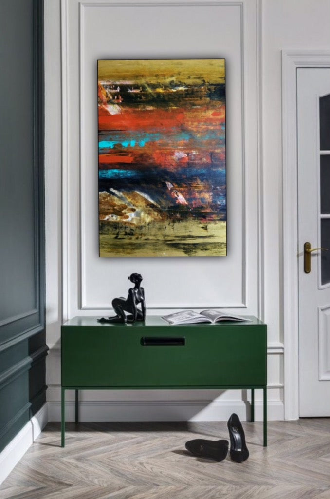 Painting is done in acrylic paint, using palette knife, It's done on stretched canvas with 1.5” gallery style. My signature will be on front on bottom right side of canvas. Your painting will be ready to hang on wall with wire on back of the painting!!!!