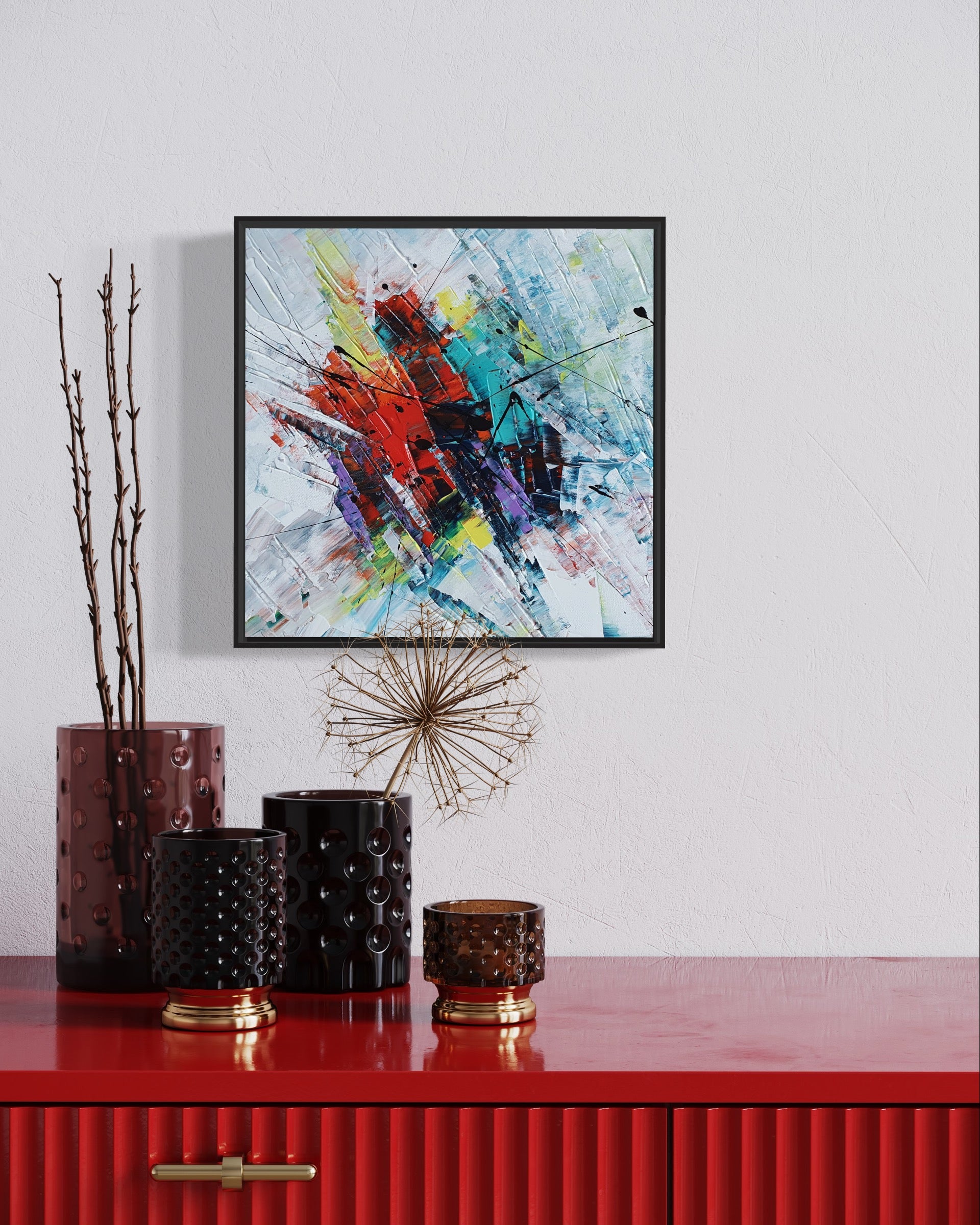 "Bring color to your boring walls with this very colorful piece of wall art. Painted with artist-grade paints and brushes, a Positive Presentation is sure to captivate eyes with its wide range of vivid colors".