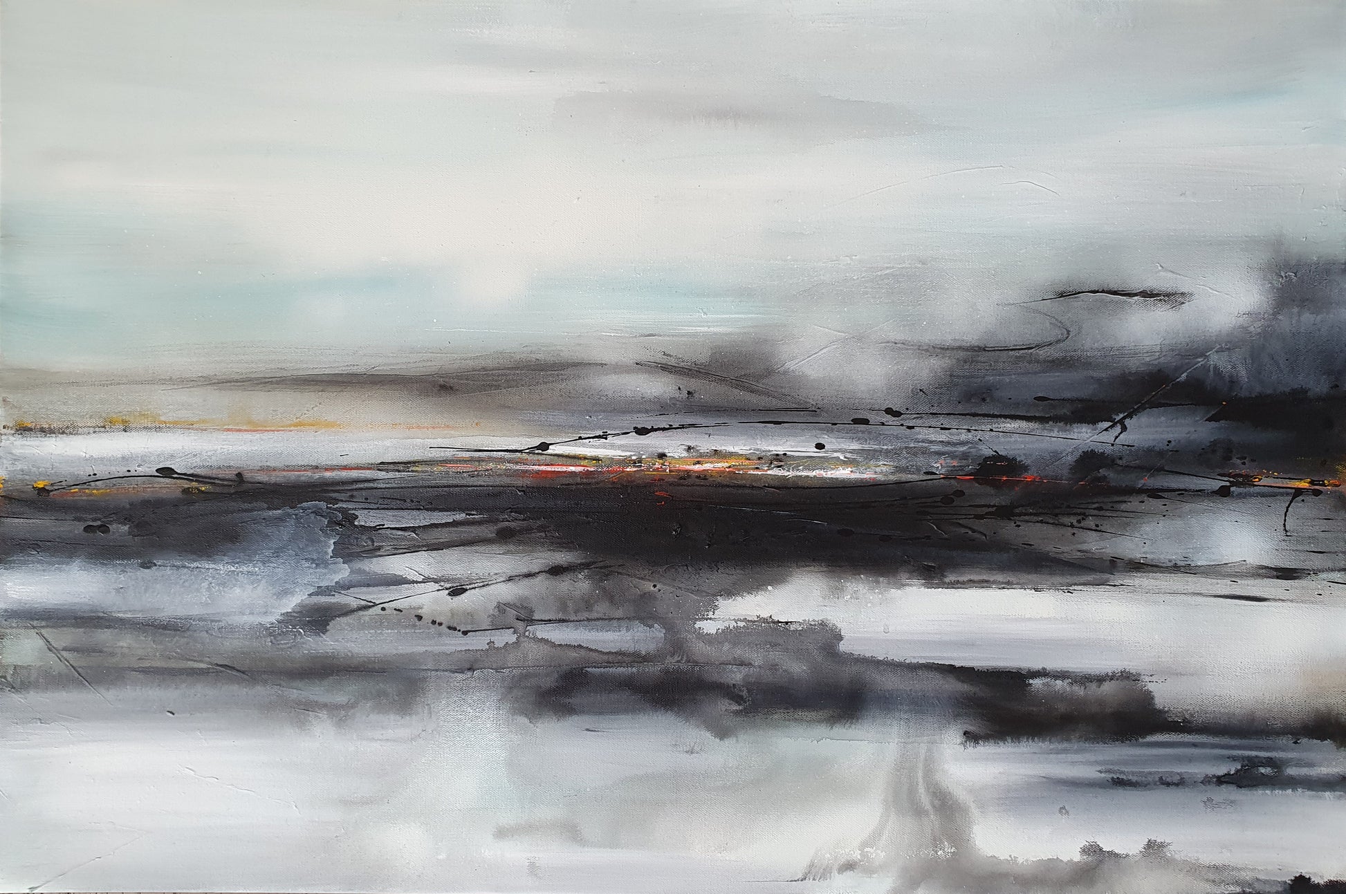 “Whispers of Distant Shores” is more than just a painting — it’s an atmosphere. This abstract landscape brings a serene, contemporary elegance to any room. With its gentle transitions of misty greys, deep shadows, and subtle golden highlights, it evokes both calm and curiosity. Perfect for modern interiors, this artwork creates a striking focal point while still offering a sense of quiet sophistication. Whether placed in a living room, office, or entryway, it transforms your space with a fresh, artful presence that speaks without words.